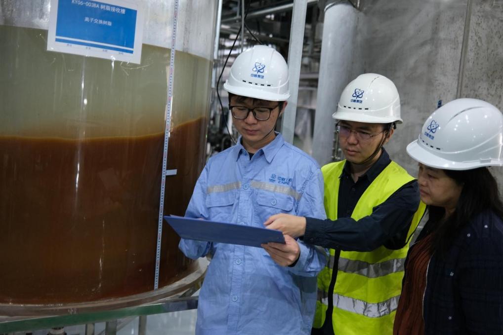 2024年4月23日,中国核电工程有限公司的企业导师和项目负责人现场指导朱澳(左一)。(李海萁 摄)